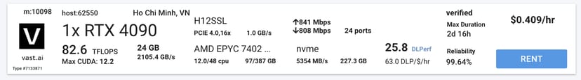生成AIをローカルで動かすロマンに取り憑かれると、20万円を超えるGPUの手痛い出費がありえるが、20万円もあればVast.aiでRTX4090を4,000時間ほど使えるので、当分の間、GPUを購入せずに済みそうだ。