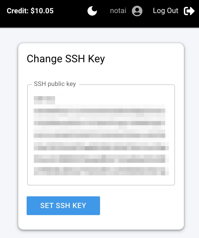 # 暗号鍵の生成ssh-keygen# 公開鍵の表示cat id_rsa.pubコピーした公開鍵を、Vast.aiのConsole > Account > Change SSH Keyにペーストする。