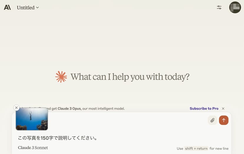 まずは、新たにClaude 3に備わった画像認識機能を試してみよう。