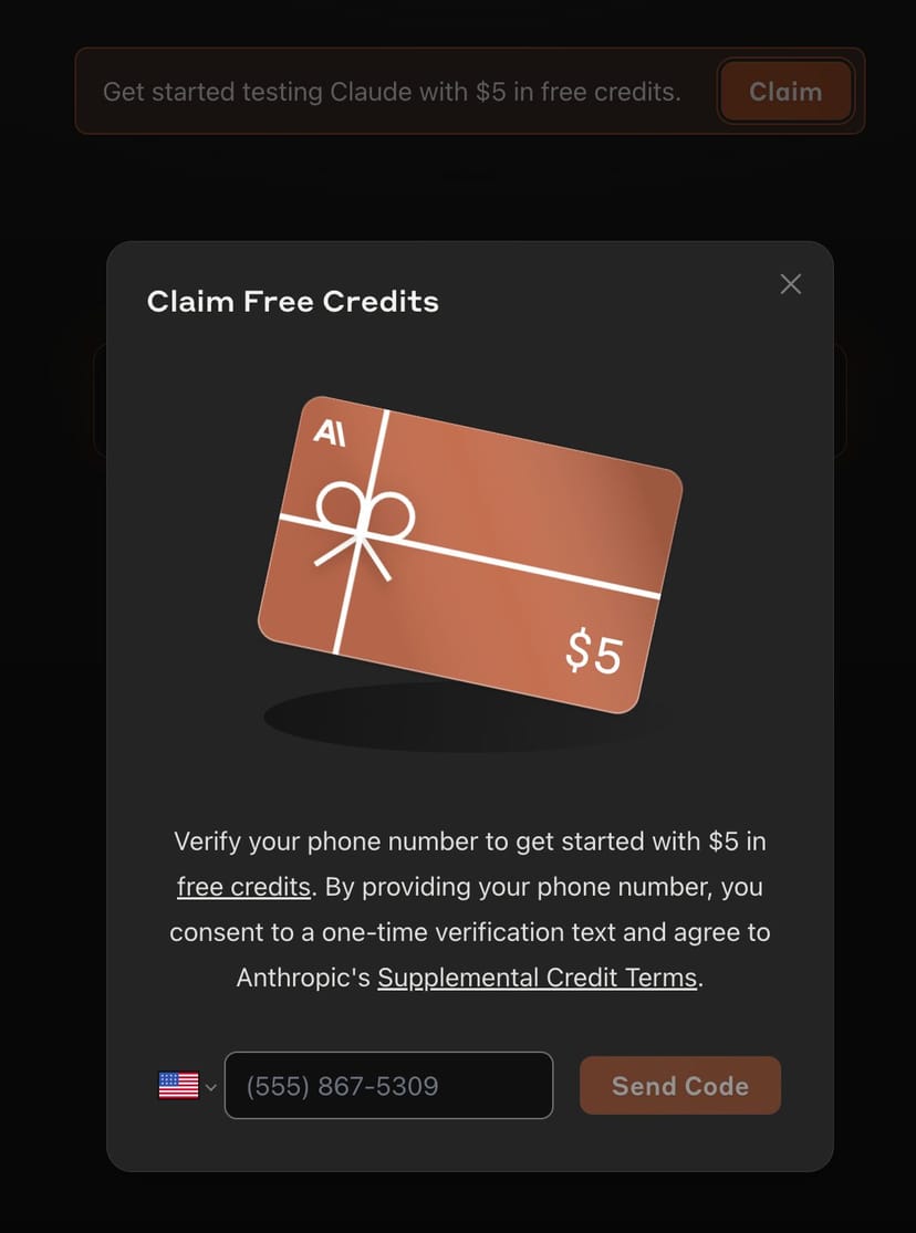 ウェイトリストが廃止され、誰でも登録可能になったClaudeのAPIアカウントを作ると、5ドル分のお試しクレジットが付与されるのだ。