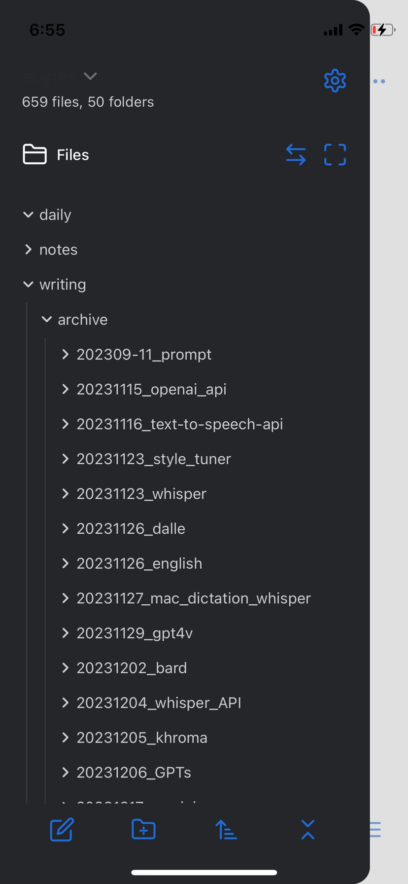 Obsidianのようにコミュニティプラグインで機能を拡張していくことはできないし、深いフォルダ階層をツリー形式で確認したりもできないが、それが逆によく、文章を書く以外のノイズがない。