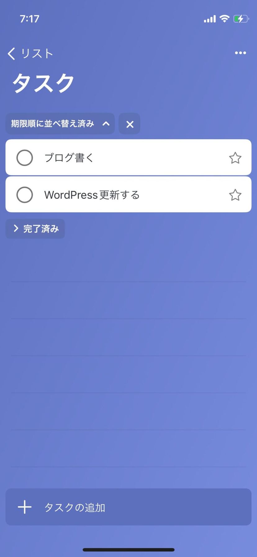 極めてシンプルで、だからこそ使いやすいインターフェースが特徴で、タスクの作成、整理、優先順位付け、期限設定などのTo Doアプリの基本的な機能を備えている。