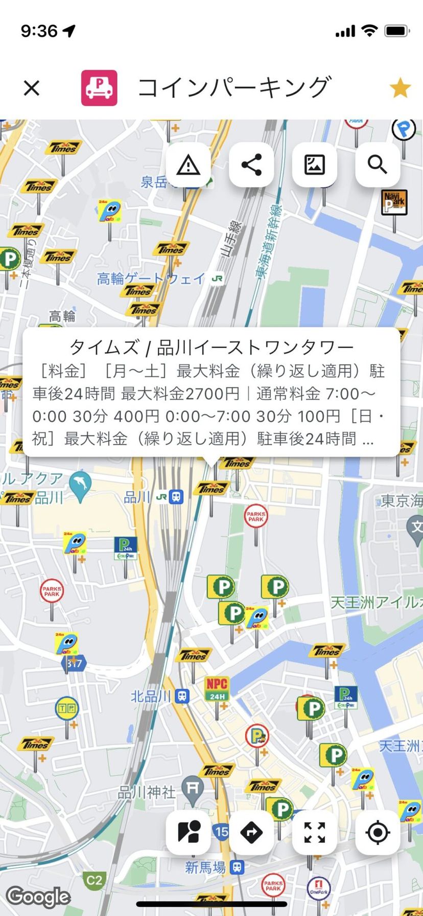 例えば、車で移動している時に、移動先の駅の周辺にコインパーキングがあるか、また周囲のどのコインパーキングが安いのかを、地図の上で直接調べることができるので、非常に便利だ。
