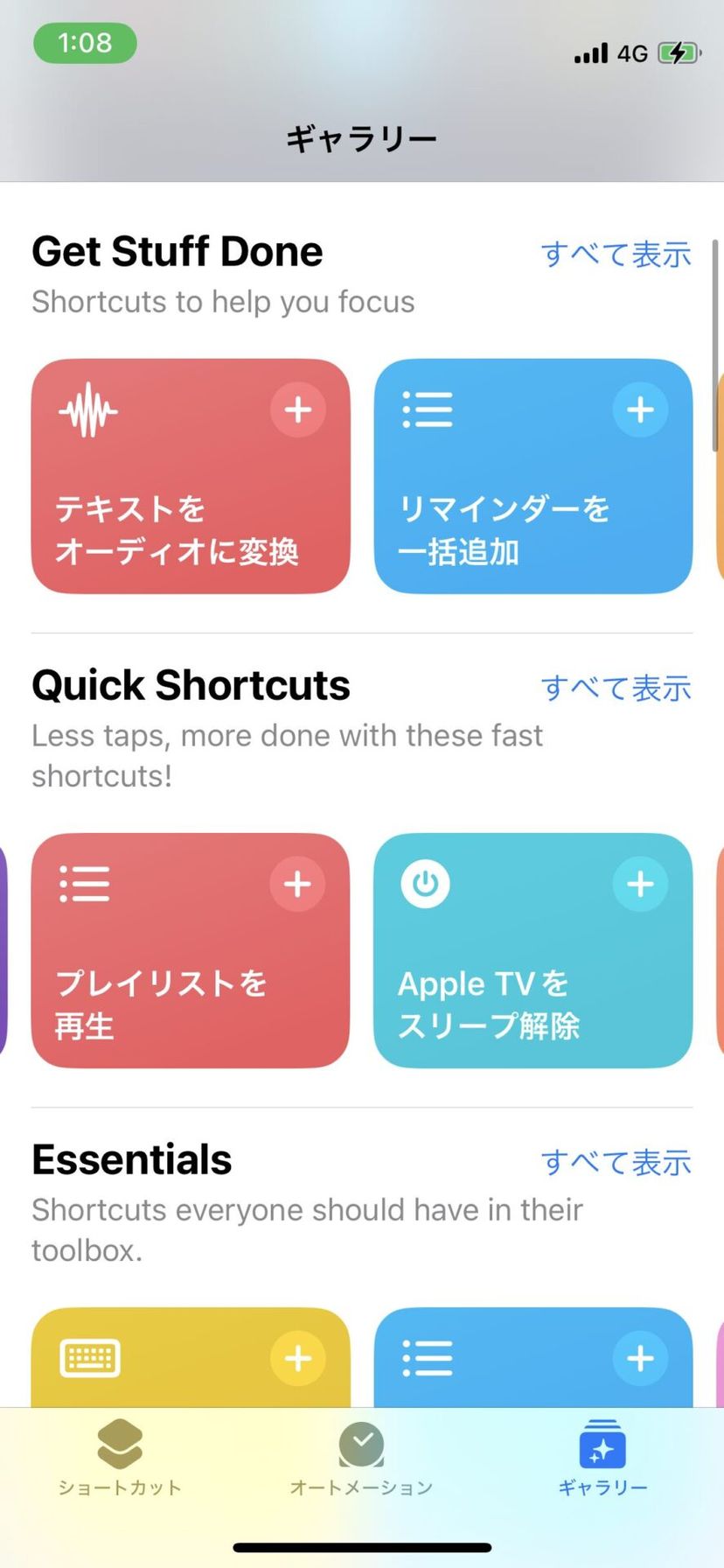 ショートカットアプリでは、ギャラリーから既存のショートカットを追加したり、自分でゼロからショートカットを作成したりすることができる。