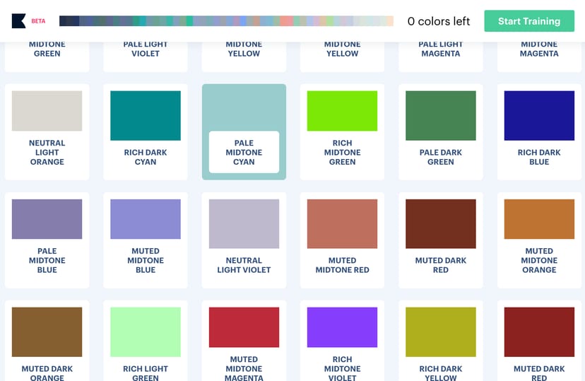 50色を選び終わって、右上にある「Start Training」をクリックすると、AIのトレーニングが始まる。