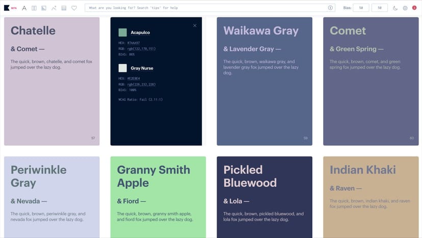 自分好みのカラーパレットでありながら、色覚多様性に配慮したコントラスト比を満たす背景色とテキスト色の組み合わせだけを確認できるので、Webデザインなどを行う上で非常に便利な機能だ。