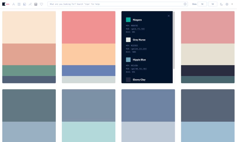 それぞれの閲覧モードで、気に入った配色を見つけたら、HEXコードや, RGBコードなどとしてコピーできるので、すぐに自分のプロジェクトに採用することができる。