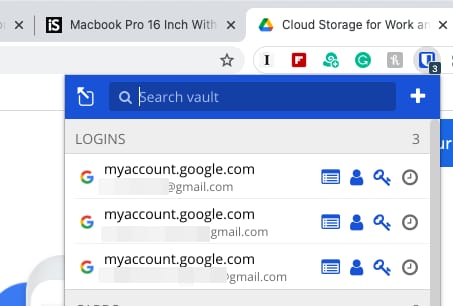 例えばGoogleのログインページを開いてみると、筆者が持っている全アカウントのIDとパスワードを表示してくれる。