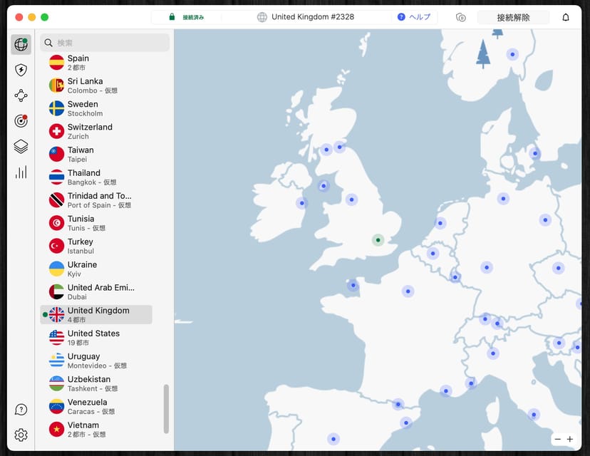 NordVPNでは多数の国・地域からサーバーを選択できる