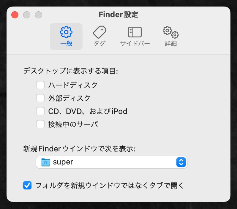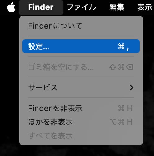 こうしたストレスを軽減するために、Finderのウィンドウを開いた状態で、左上のメニューから「設定」を開き、「一般」「デスクトップに表示する項目」のチェックを全て外しておくことをオススメする。