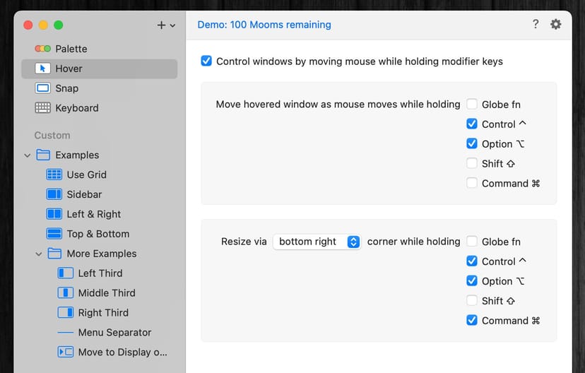 Moom:ウィンドウサイズの高度なカスタマイズ