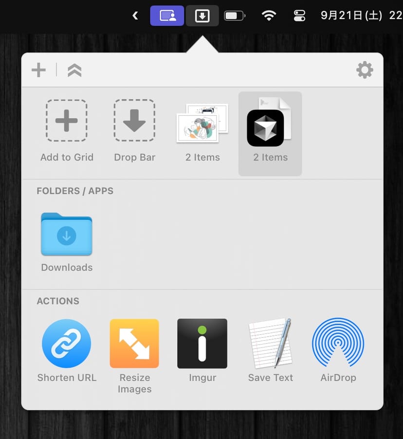 Dropzone 4は、Macの画面右上にある「メニューバー」に常駐し、いつでもどこからでも呼び出せるお役立ちアプリである。