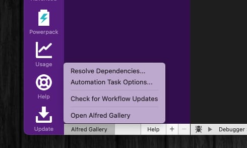 Alfredの設定を開き、ワークフローの一覧の左下「Alfred Gallery」をクリックすると、「Automation Task Option」が表示されるので、そこから最新版をインストールしておこう。