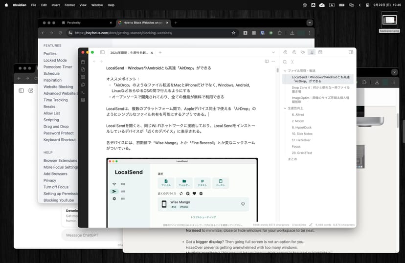 HazeOverは、多くのウィンドウを同時に開いて作業するMacユーザーに特におすすめだ。