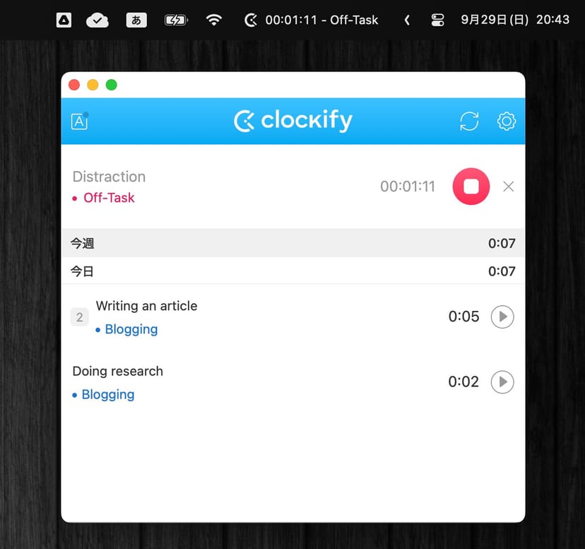 Macを使っていない時間、例えば外出中や移動中、食事中なども、徹底的にClockifyで記録していくと、時間の使い方が上手くなる。