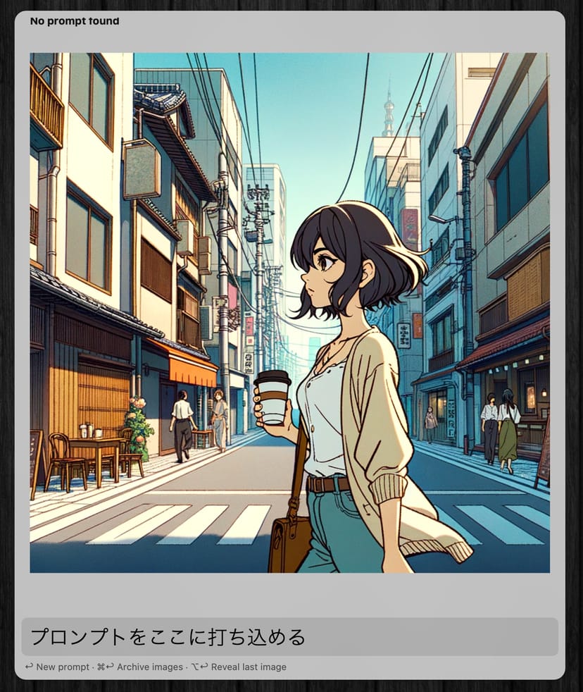 さらに、「dalle 画像生成のプロンプト」とコマンドを打ち込むと、画像生成AIであるDALL-E 3による画像の生成も可能だ。