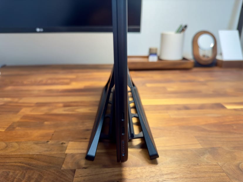 5千円弱で購入できるスタンドも販売されており、外出先だけでなく、自宅でセカンドディスプレイとして使用することも可能だ。