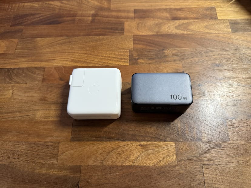 MacやiPhoneにおまけで付いてくる充電器は、サイズが大きく邪魔になる割には、充電パワーが弱く無駄に時間がかかるので、真っ先に用意すべきはGaN充電器だ。