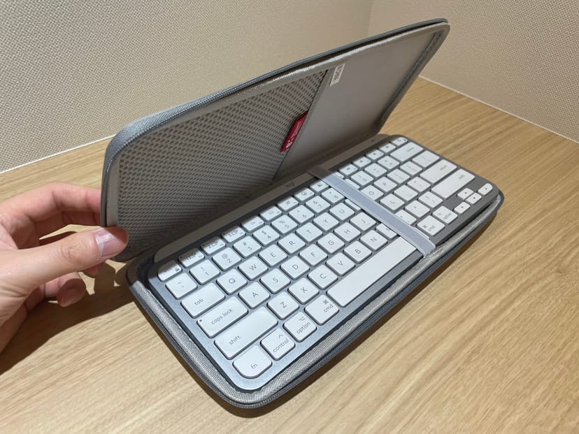 薄型軽量で持ち運びにも適しており、マウスと同じく多数のアクセサリがサードパーティーから販売されているので、筆者はここ2年ほど、HermitshellというシェルブランドのMX Keys mini専用ケースを利用してカバンに忍ばせている。