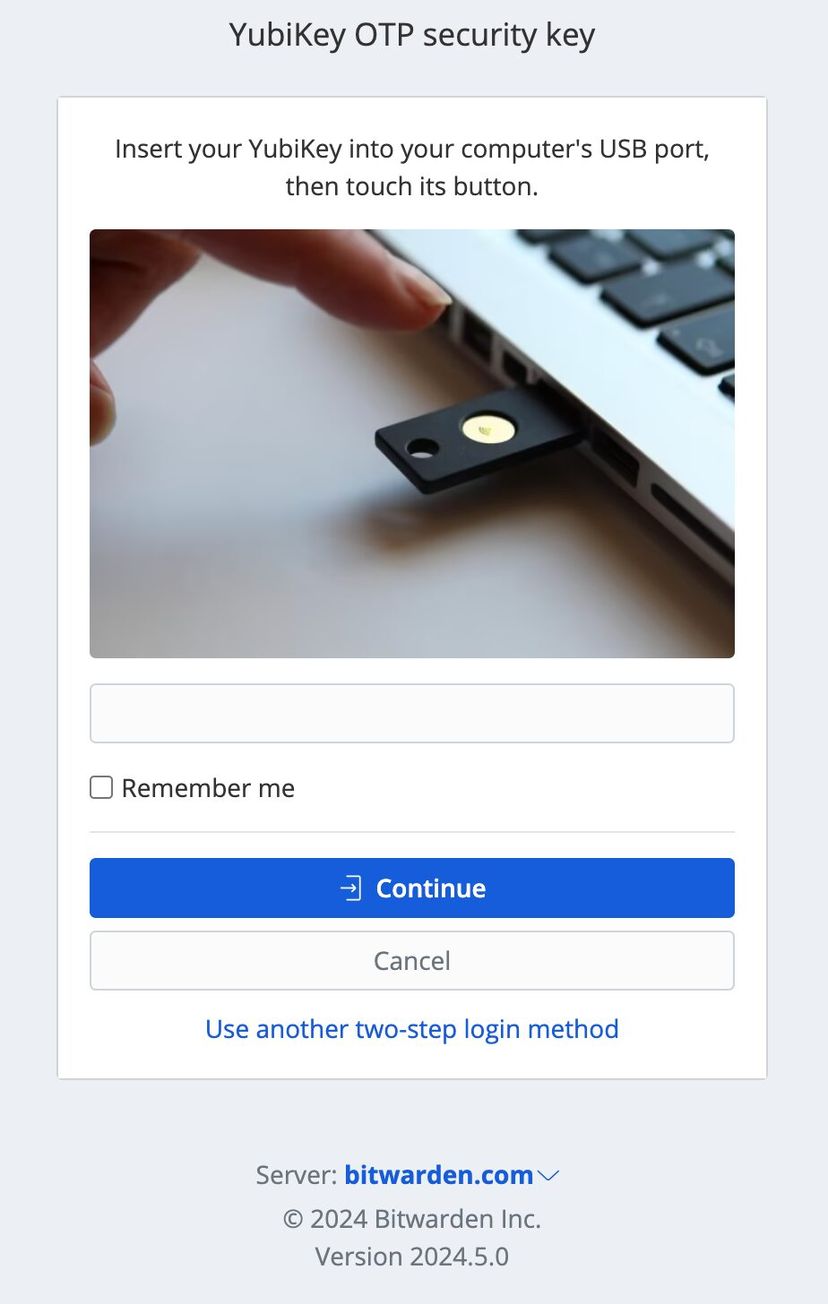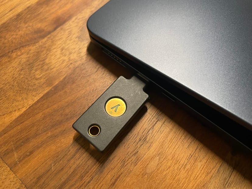 通常のIDとパスワードの入力に加えて、MacBookのUSB-CポートにYubiKeyを差し込まないと、アカウントへのログインができなくなる。
