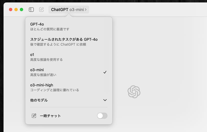 ただし、メールの下書き、くらいのシンプルな用途では、GPT-4oとo3-miniの違いを体感しにくいかもしれない。