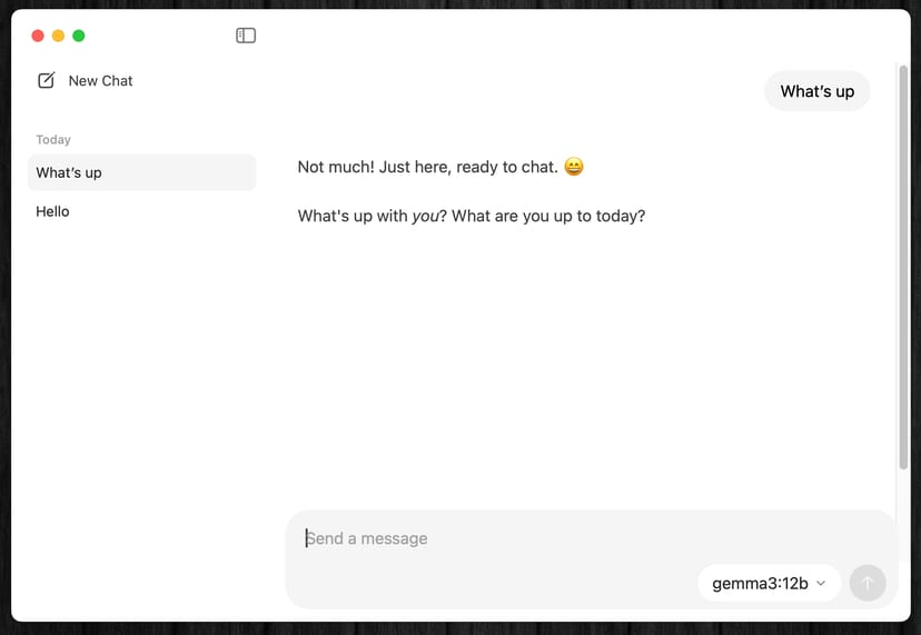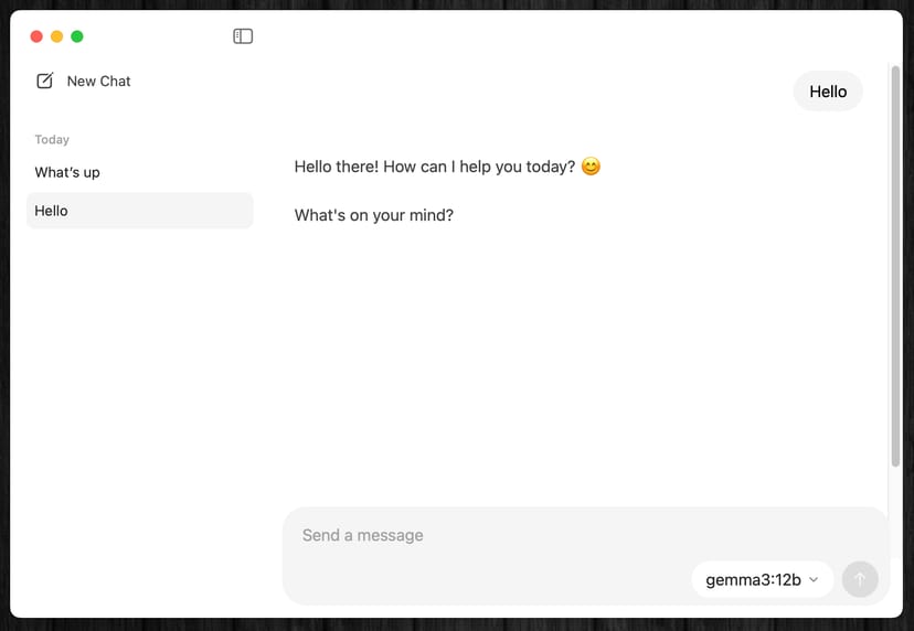 Ollamaアプリ自体が、以下のようにChatGPTのようなAIチャットアプリ風のインターフェースに進化したのだ。