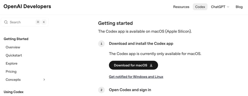 記事執筆現在、Codexのアプリ版は、macOS(Apple Silicon)向けのみ提供されている。Windows版も、近々リリース予定だそうだ。