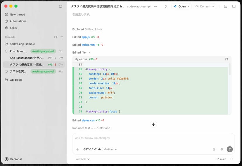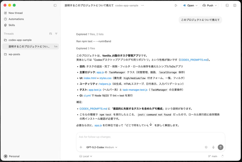 Codexデスクトップ版を実際に使ってみた