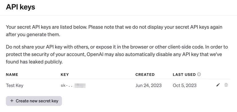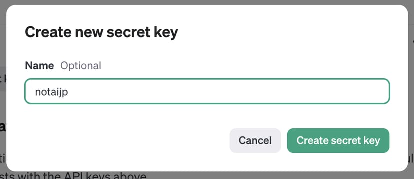 - キー生成を開始: APIキーセクションに移動し、「Create new secret key」をクリックする。