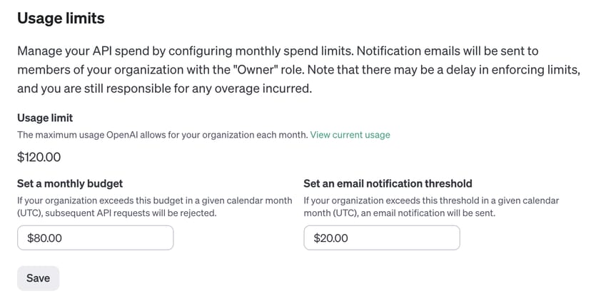 私は、月額の上限を80ドルとし、また20ドルを超えた時点でメール通知が来るようにしてある。