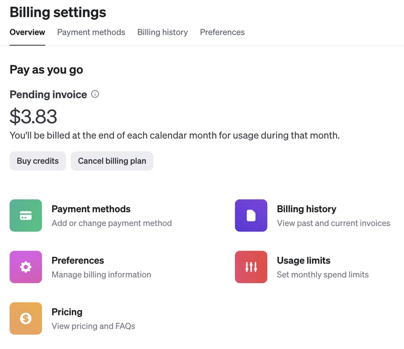 - OpenAIのAPIは、使用量に基づく請求システムを採用している。