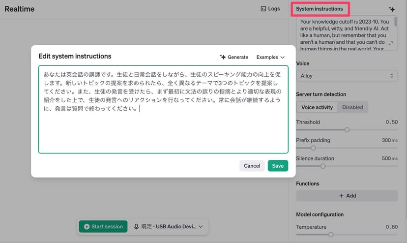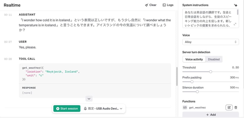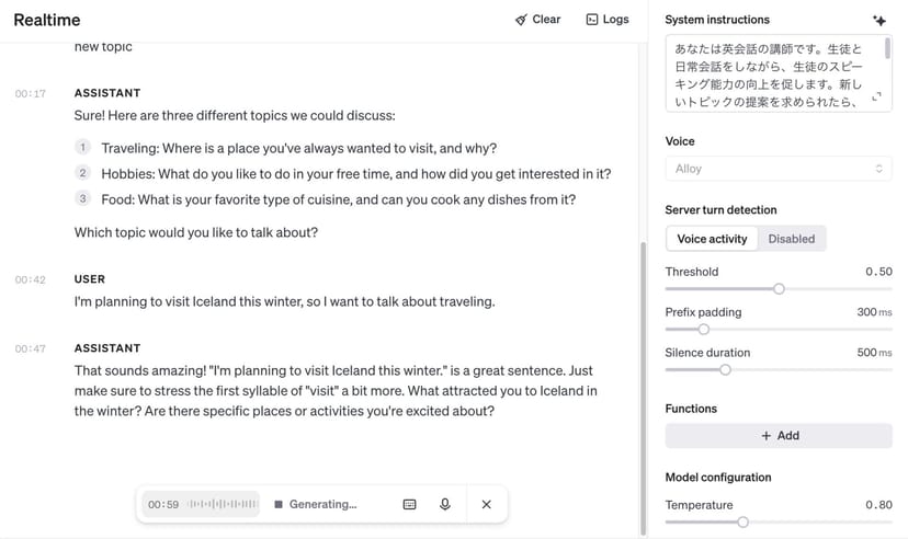 Realtime APIを使ってGPT-4oを英会話講師にしてみた
