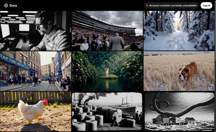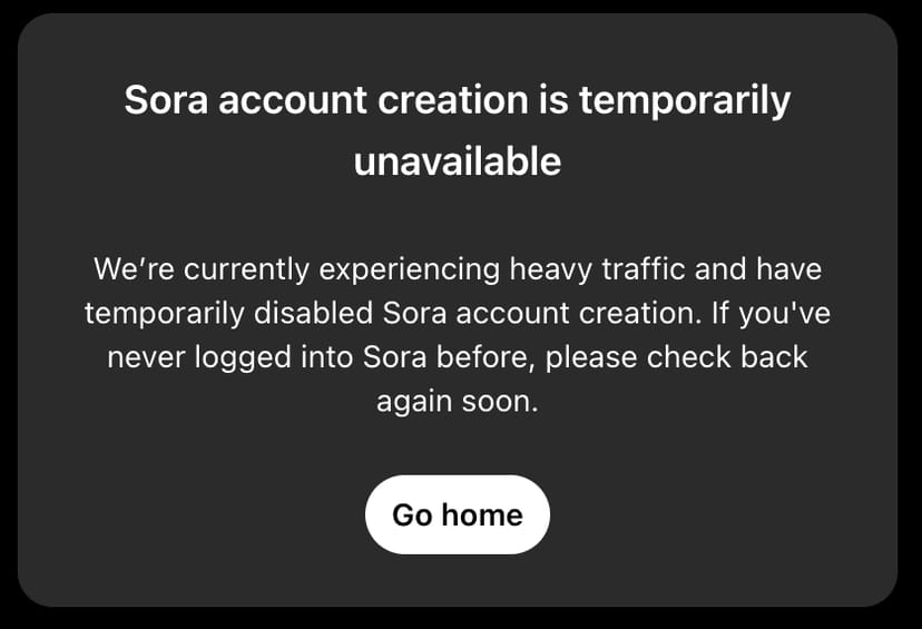 ただし、発表直後から、アクセスが殺到して、現在はSoraのアカウント作成が制限されており、ログインしても以下のようなメッセージが表示される。