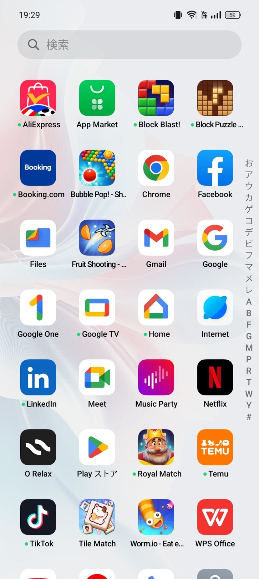 スマホを開封して初回起動した直後の状態で、以下のようにゲームや、TikTokなどのアプリが勝手に入っている。