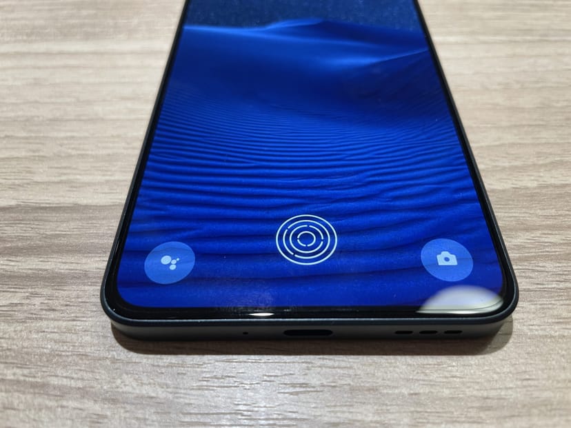 格安スマートフォンだと、サイドボタンに指紋スキャナが付いているケースも多いが、4万円という価格帯ながらディスプレイ下に指紋認証が仕込まれている。