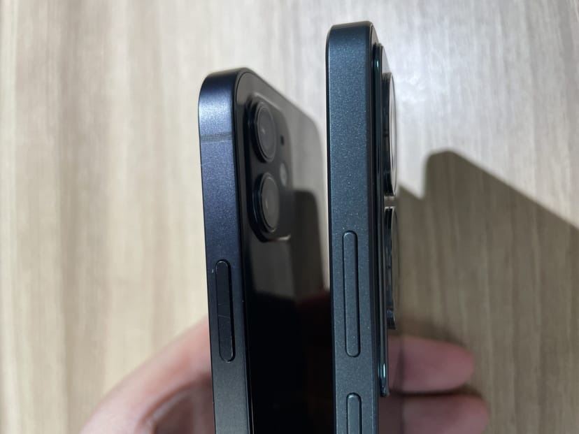 OPPO Reno11 Aと、iPhone 12を横に並べた様子が以下である。