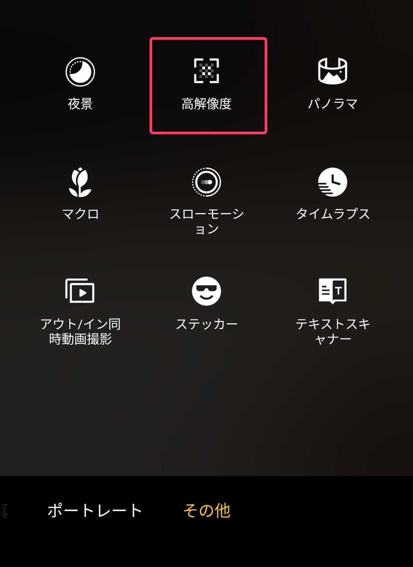 ここで、Reno11 Aの「高解像度」モードを試してみる。カメラアプリで「その他」メニューの「高解像度」モードをタップすることで使用することができる。