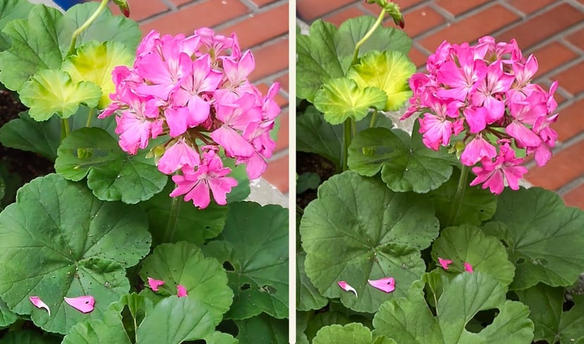 より細部を見比べるため、写真の一部にズームアップして、Oppo Reno13 A (左)で撮影した写真と、iPhone 16 Pro (右)で撮影した写真を見比べてみる。