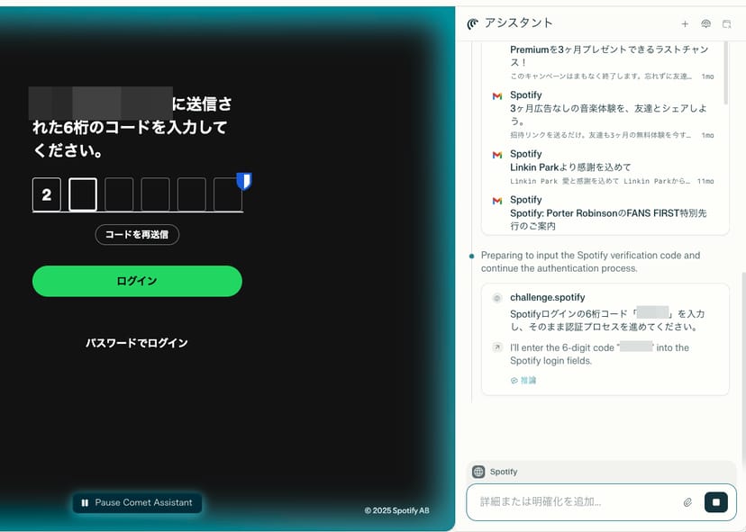 こうした単純なブラウンジングだけでなく、サイトログイン時に求められるワンタイムパスワードの入力など、「Gmailを検索してパスワードをコピー、ログインフォームにペースト」という複数サイトを行き来する複雑なタスクまでも、Cometアシスタントがスムーズに実行してくれる。
