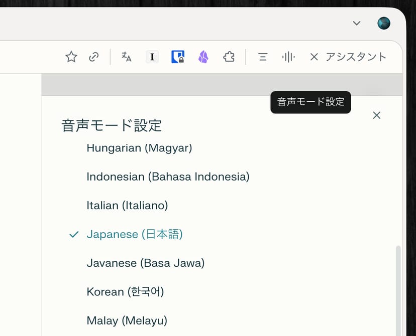 さらに、Cometアシスタントには音声モードが存在する。