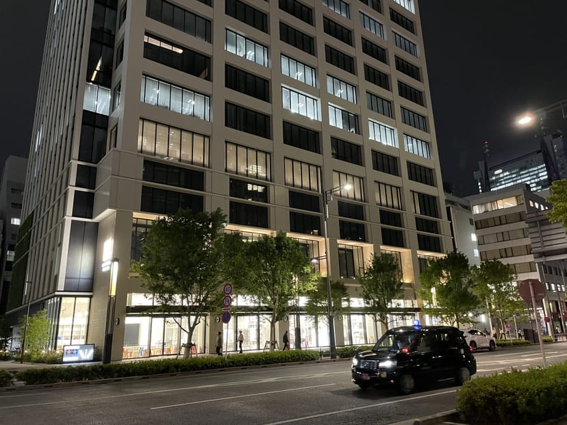 完全に日が落ちて暗くなった夜間に、ビルと道路の夜景を撮影してみた。
