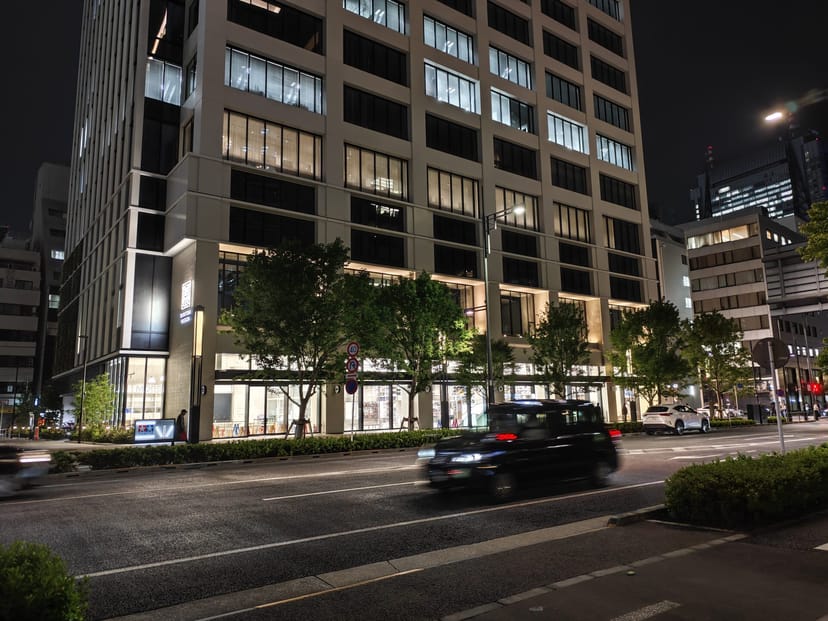 光学手ぶれ補正のおかげで、手持ち撮影ながらシャッタースピードを遅くすることができており、ちゃんと走っているタクシーのモーションブラーまで得られている。