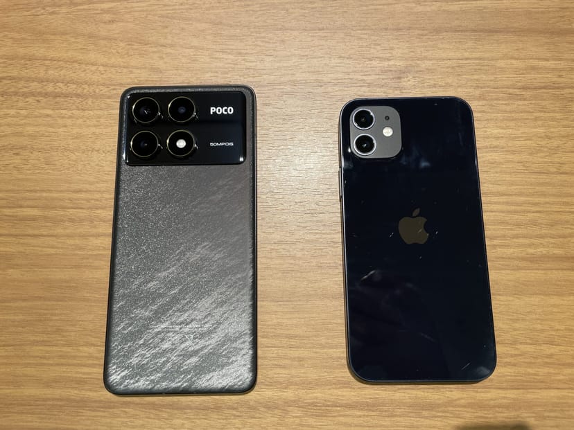 左側がPOCO F6 Pro、右側がiPhone 12である。