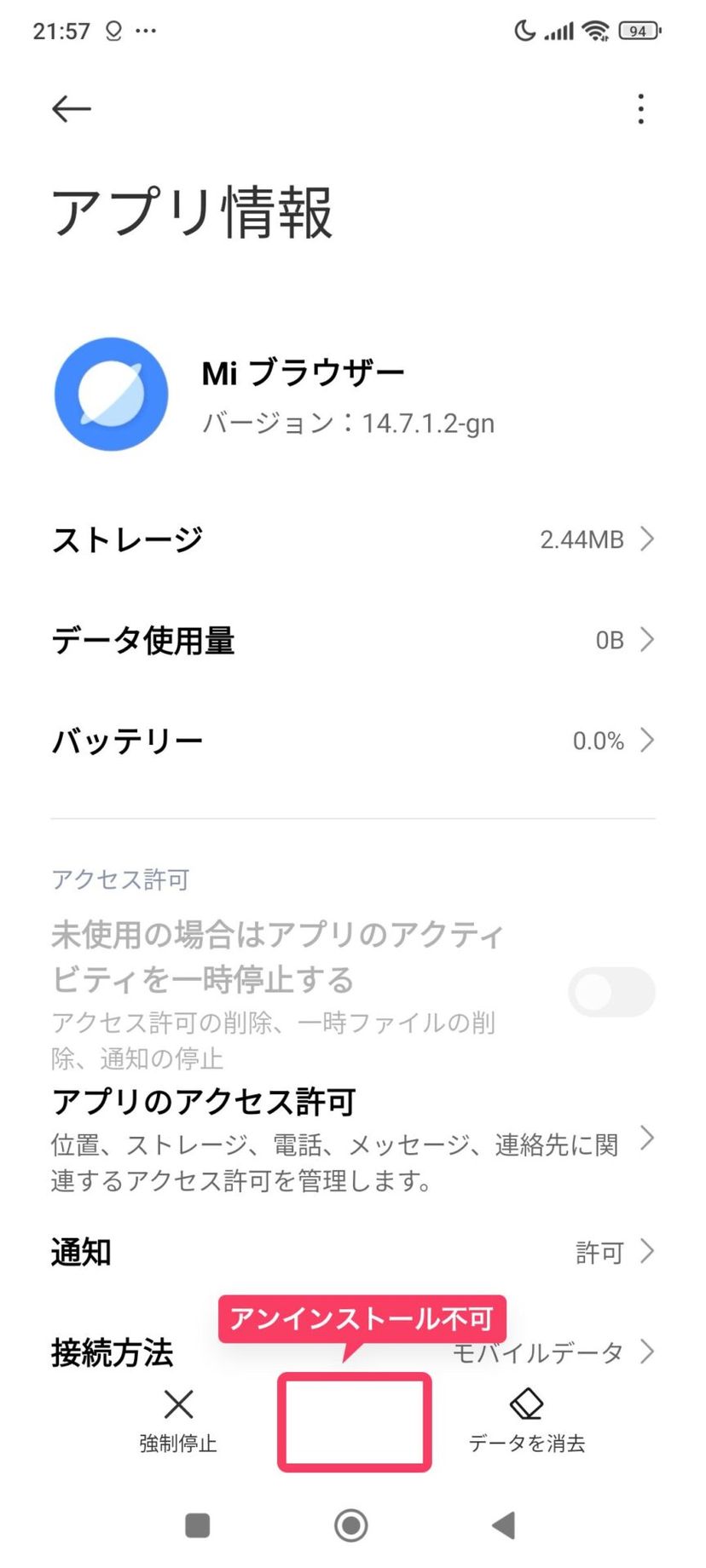 これら一連のXiaomi純正アプリは、削除することはできない。ブラウザだったらGoogle Chromeを自分で入れて使えばいいので、目くじら立てるほどではないが。