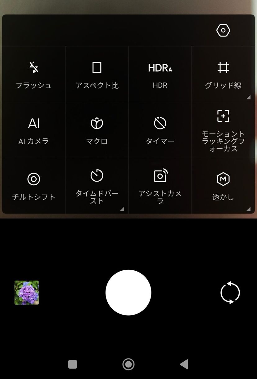 POCO F6 Proのカメラアプリ上で、超広角の8MPカメラや、2MPのマクロカメラに手動で切り替えることができる。