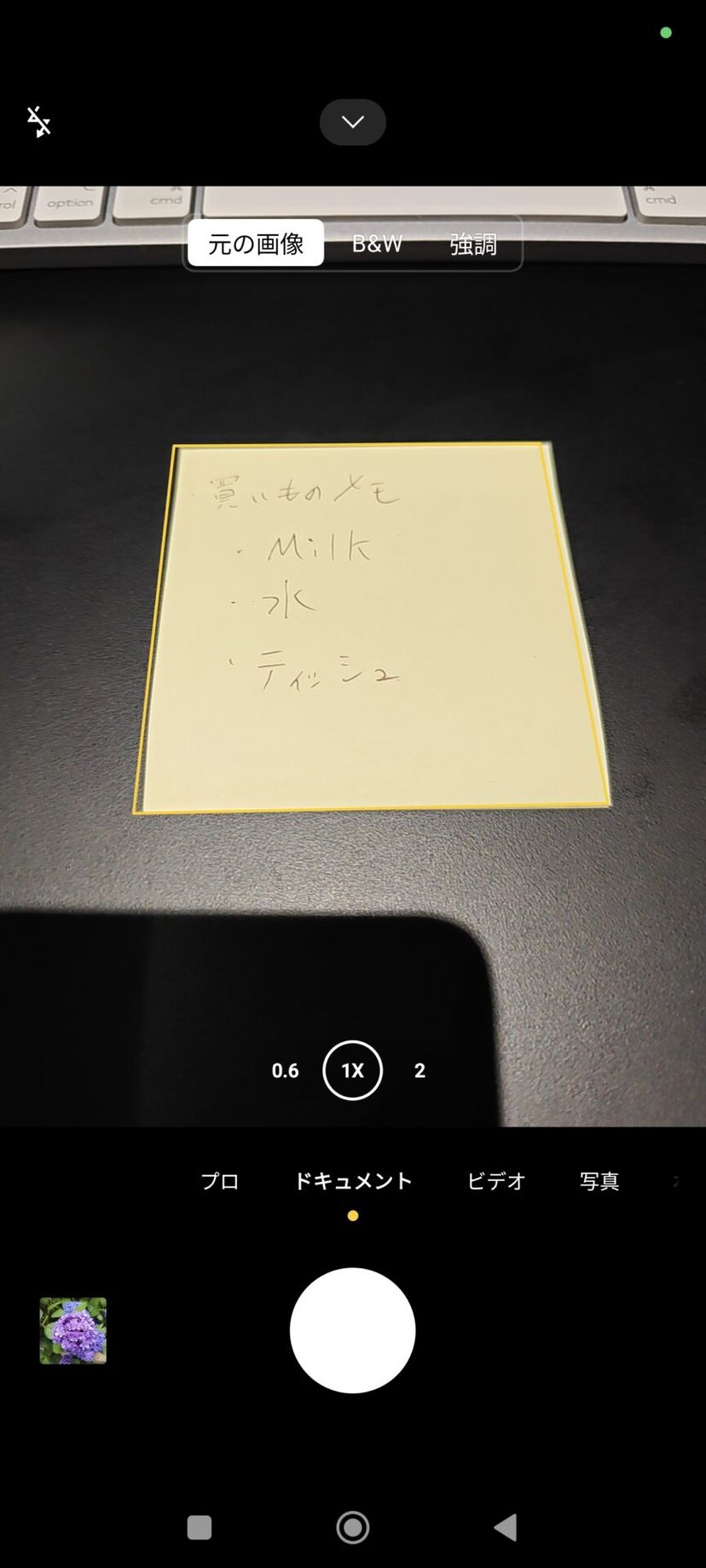 例えば、ざっと書いた手書きの付箋を机の上に置いて撮影してみる。