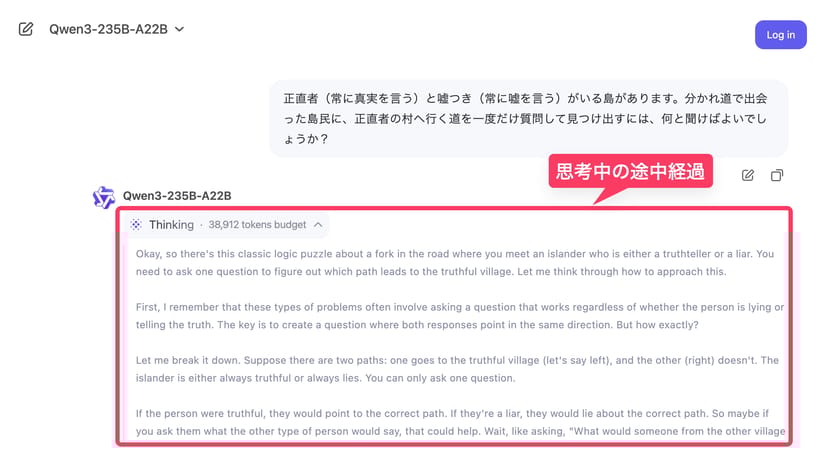 会員登録すらも不要で、ブラウザ上で無料で利用することができるので、とりあえずQwen3の性能をサクッと確認したいだけ、といった用途では、これが最も手軽だ。