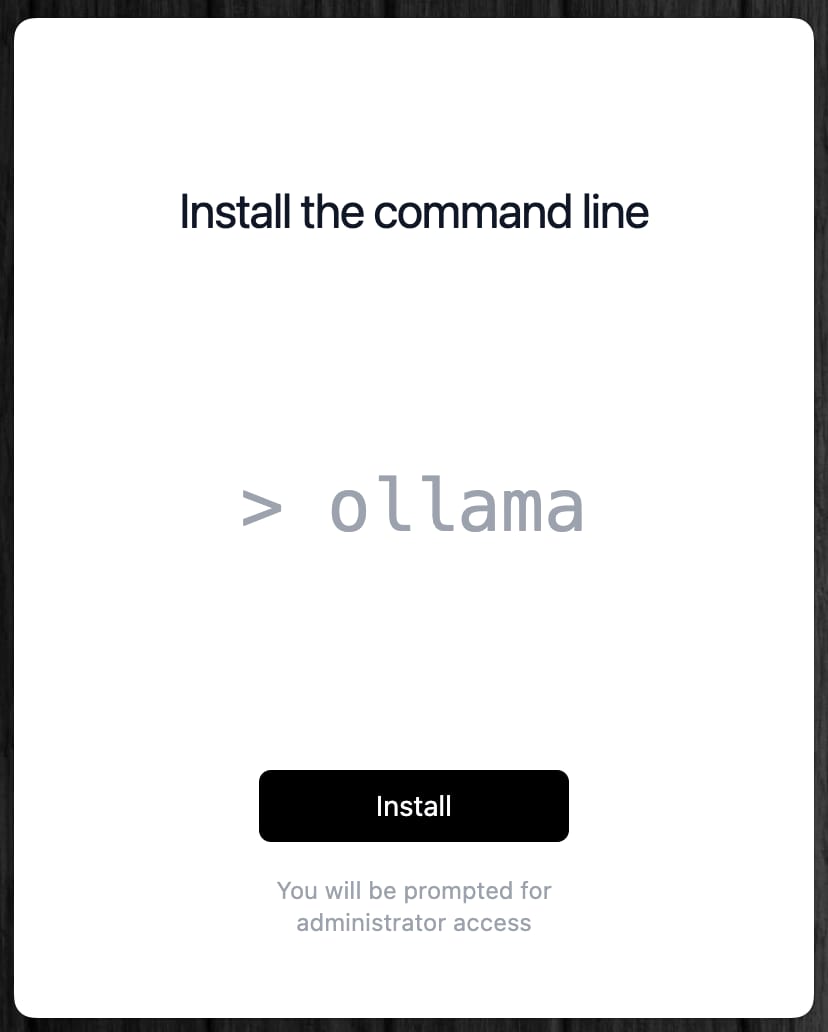 Ollamaを公式サイトからダウンロードして開いたら、コマンドラインツールのインストールを求められるので、画面の指示に従ってインストールする。
