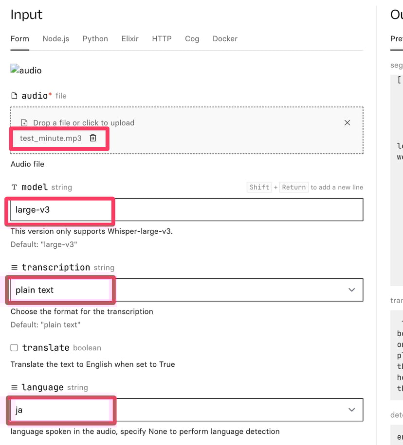 OpenAIのAPIの方がわずかに高速だとはいえ、プログラミング知識がない人がAPIを使うのは難しいし、ブラウザ上で非常に手軽に使えるReplicate上で、OpenAIのAPIとほぼ変わらないスピードで文字起こしを利用できるのは、非常に嬉しい。