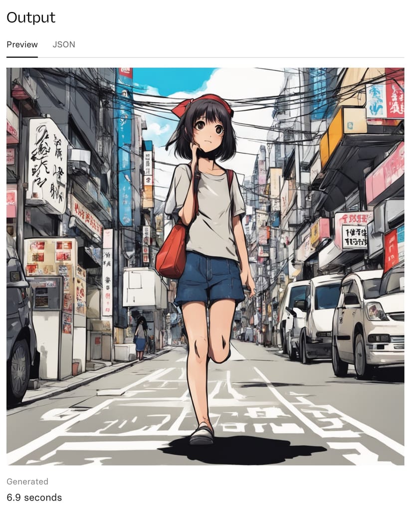 そのほかはデフォルトの設定のままとした。すると、以下のようなイラストが生成された。生成にかかった時間はわずか6.9秒だ。